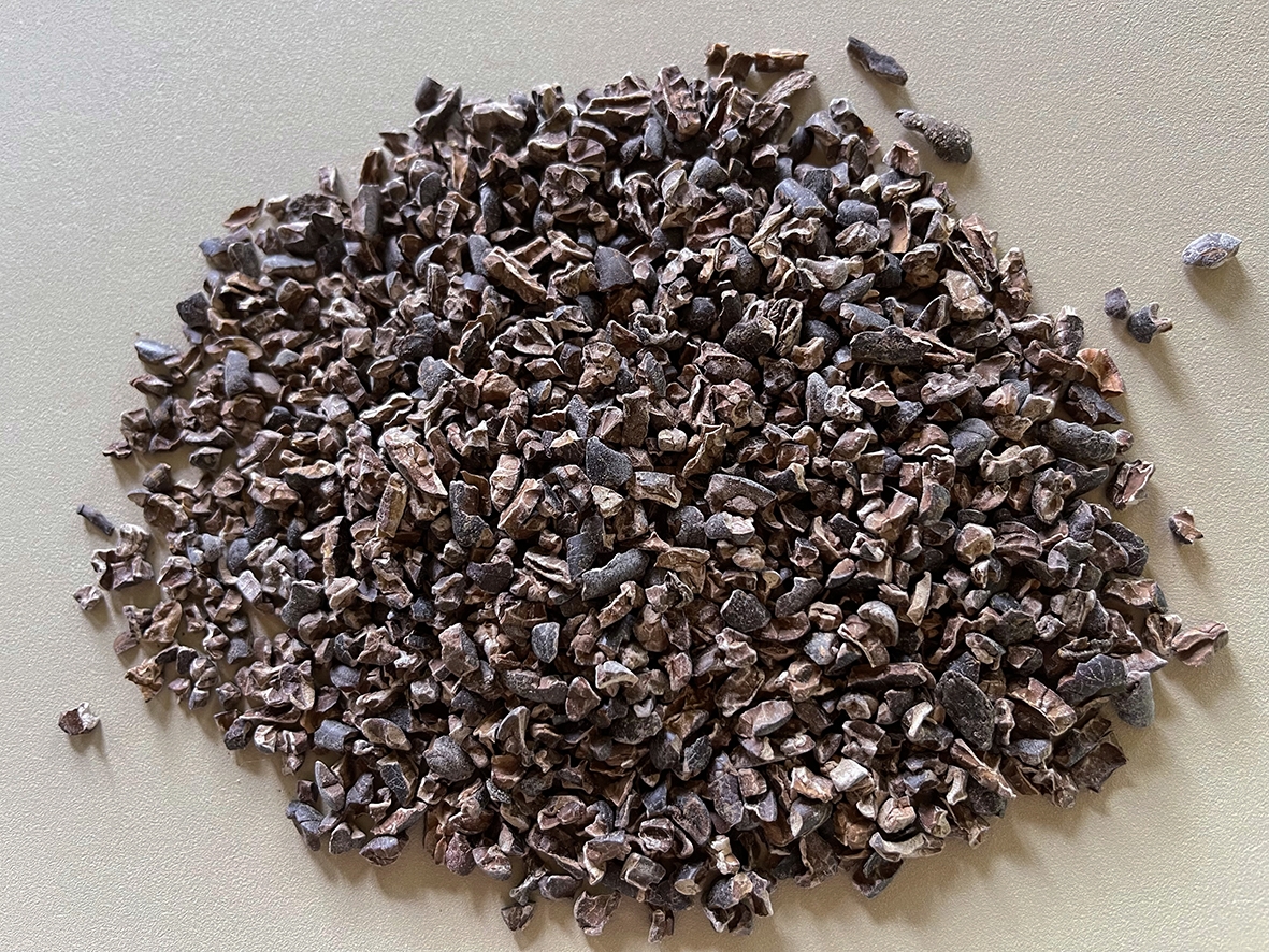 Anschliessend werden sie zu kleinen Stückchen, den Kakao Nibs,