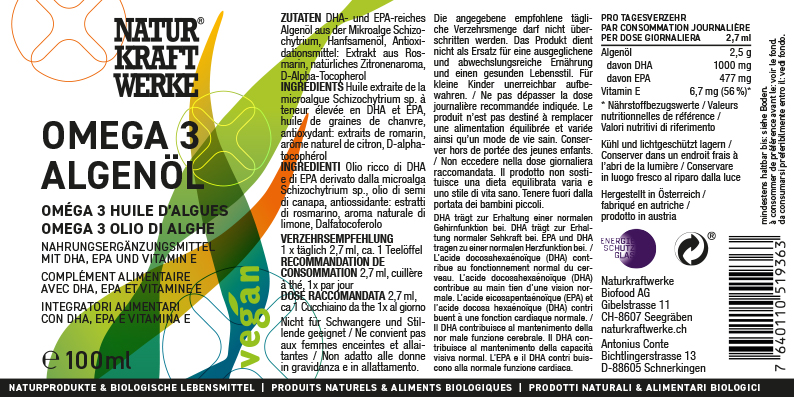 Produktinformationen "Omega 3 Algenöl 100 ml"
