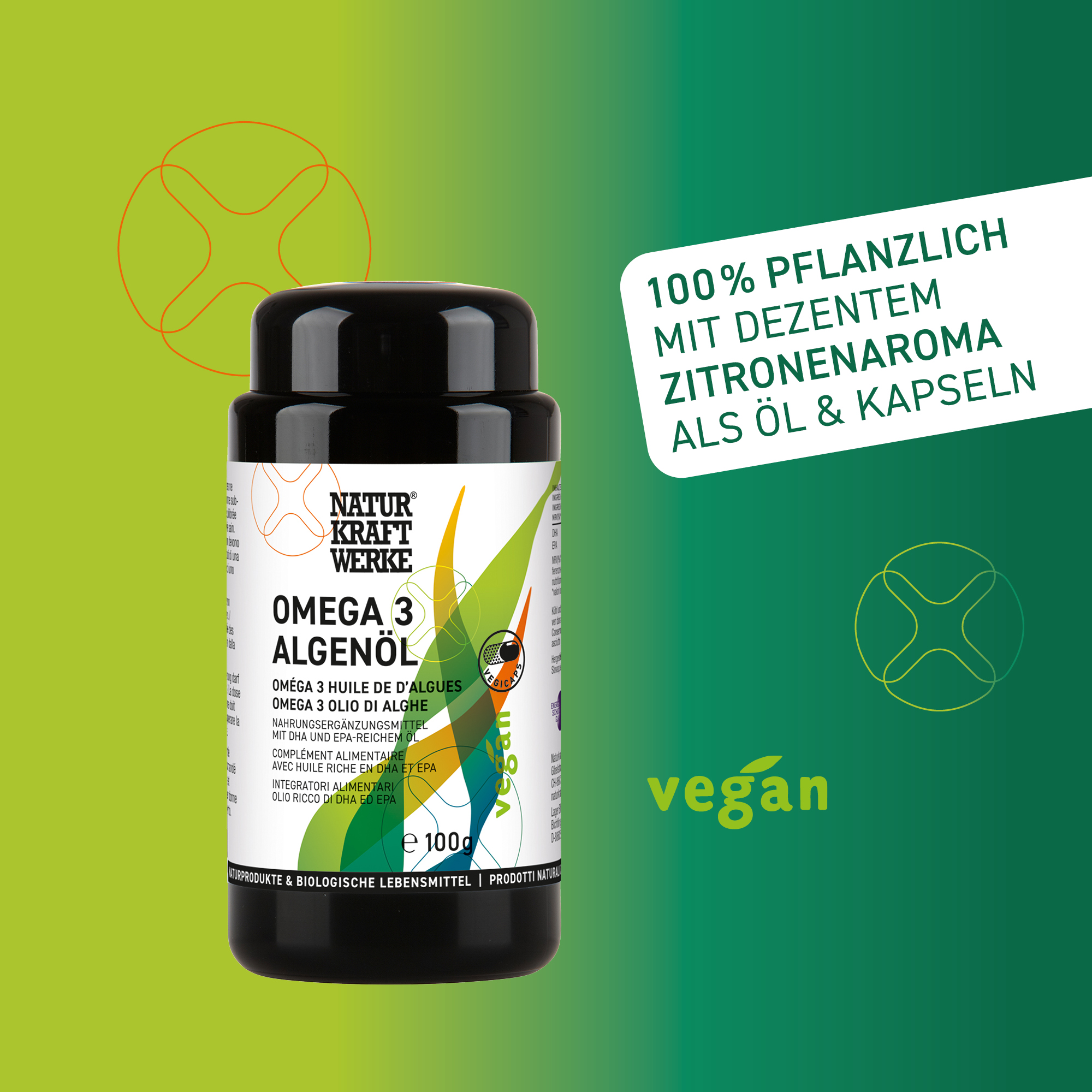 Pflanzliche Quelle für Omega-3-Fettsäuren (DHA & EPA) zur Unterstützung von Herz, Gehirn und Sehkraft. Nachhaltig, vegan und hochwertig.