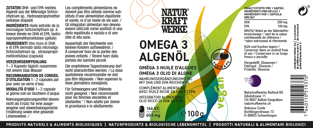 Produktinformationen "Omega 3 Algenöl Vegicaps 100 g"