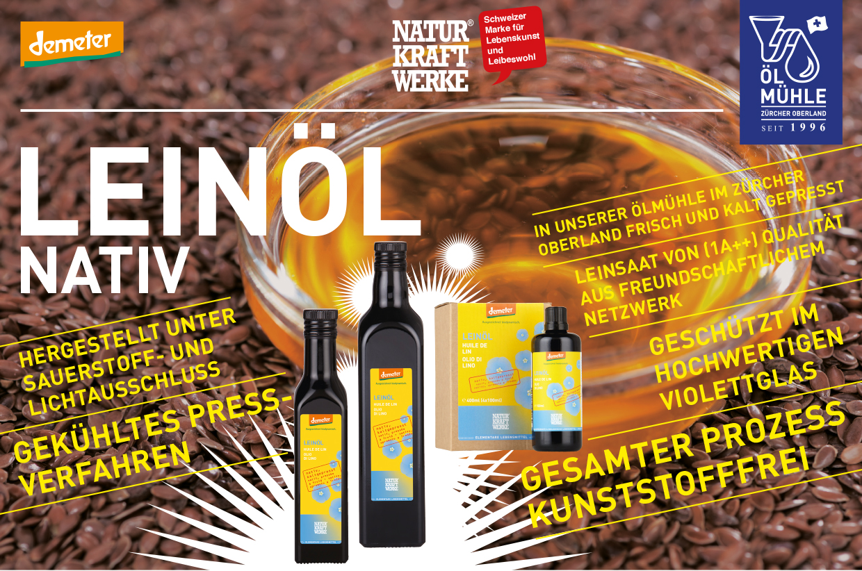 Demeter Leinöl kaltgepresst von der Ölmühle Zürcher Oberland