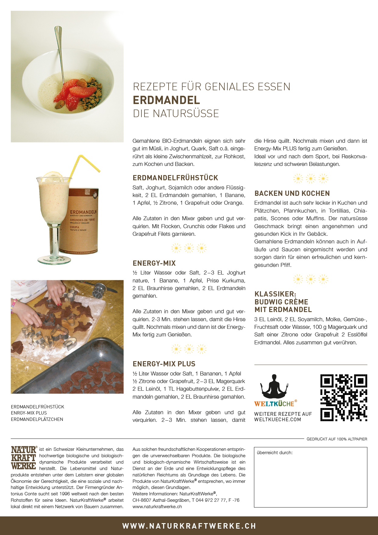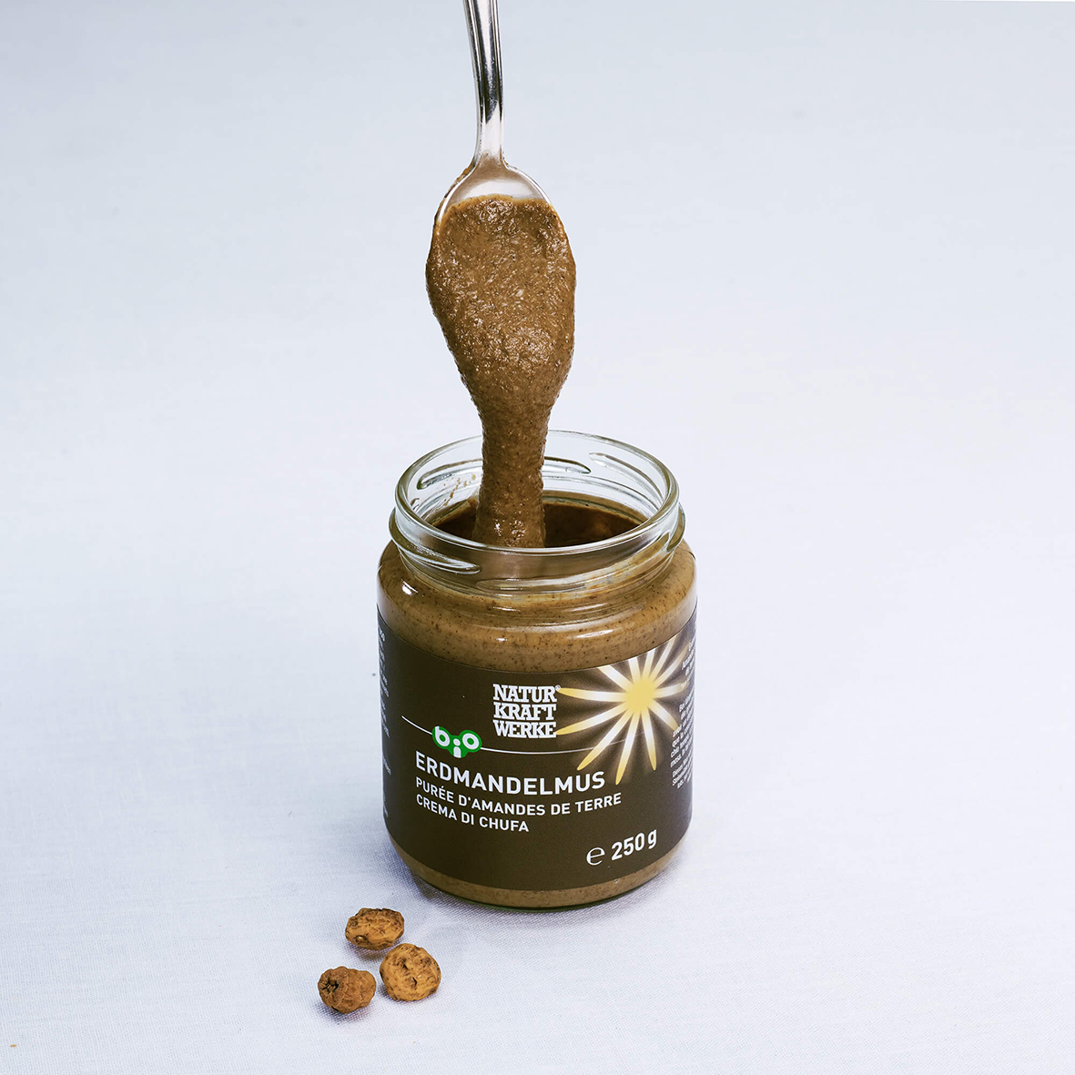 Diese exklusive Erdmandelcreme eignet sich ideal als Brotaufstrich oder zum Verfeinern von Desserts. Das Erdmandelmus schmeckt von Natur aus süss und nussig, ist gluten- und lactosefrei und auch für Nussallergiker ideal. Auch als Füllung von Backwerk oder als Zugabe ins Müsli ist sie sehr empfehlenswert. Sie ist auch pur eine bereichernde Leckerei vor allem auch für Kinder.
