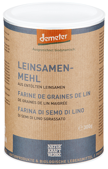 Das Demeter Leinsamenmehl von NaturKraftWerke ist ein sehr feines Mehl hergestellt aus dem Presskuchen der NaturKraftWerke Leinölproduktion.
