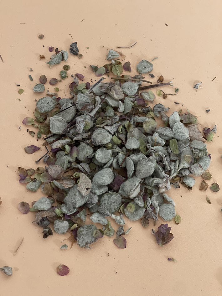 Im frühen Sommer vor der Blüte wird der Diktamos von Hand geerntet und anschliessend im Schatten schonend getrocknet. Das Kraut wird nach der Trocknung sorgfältig verpackt und verschickt. In unserem Firmenzuhause wird das wertvolle getrocknete Gut nochmals kontrolliert und in Papierbeutel verpackt.