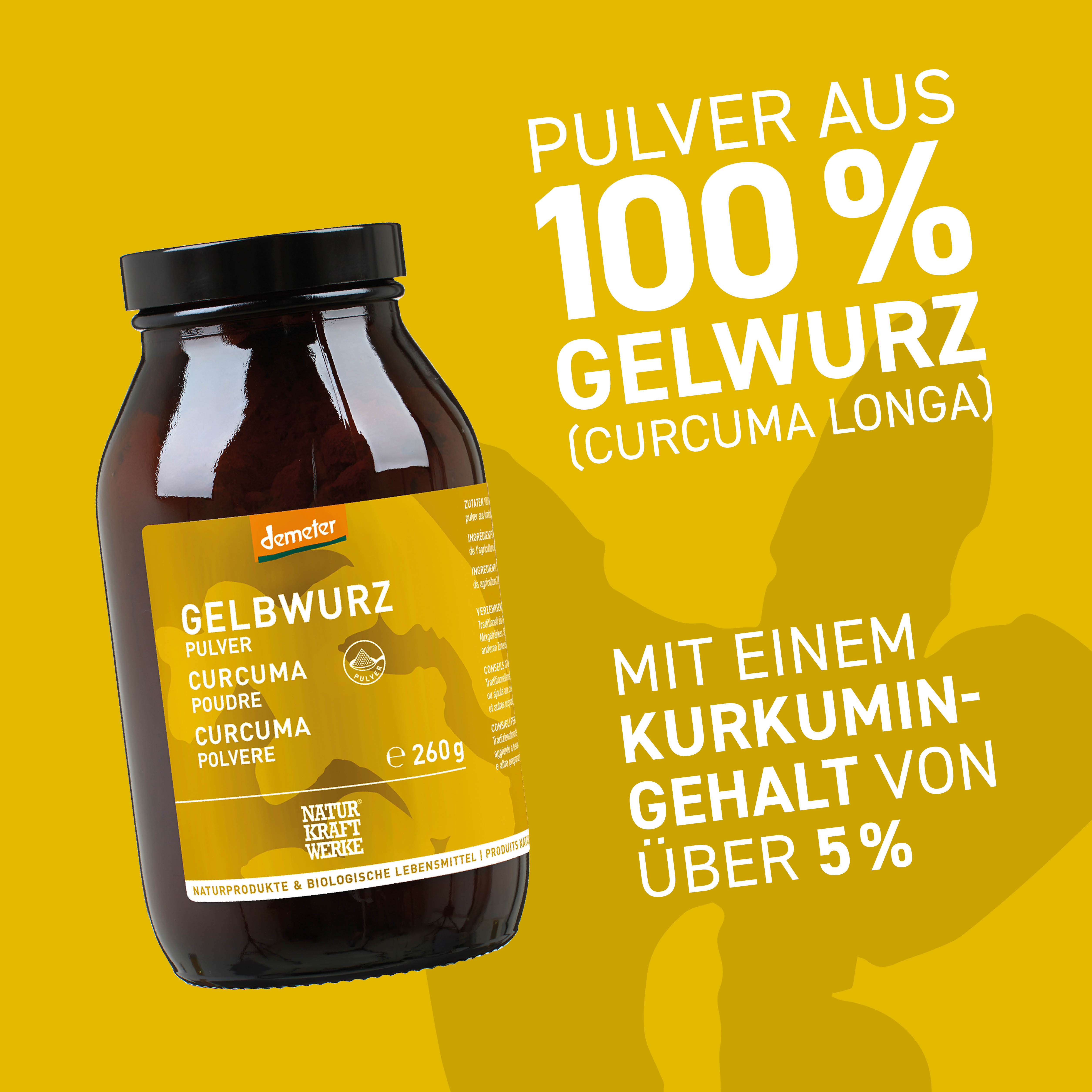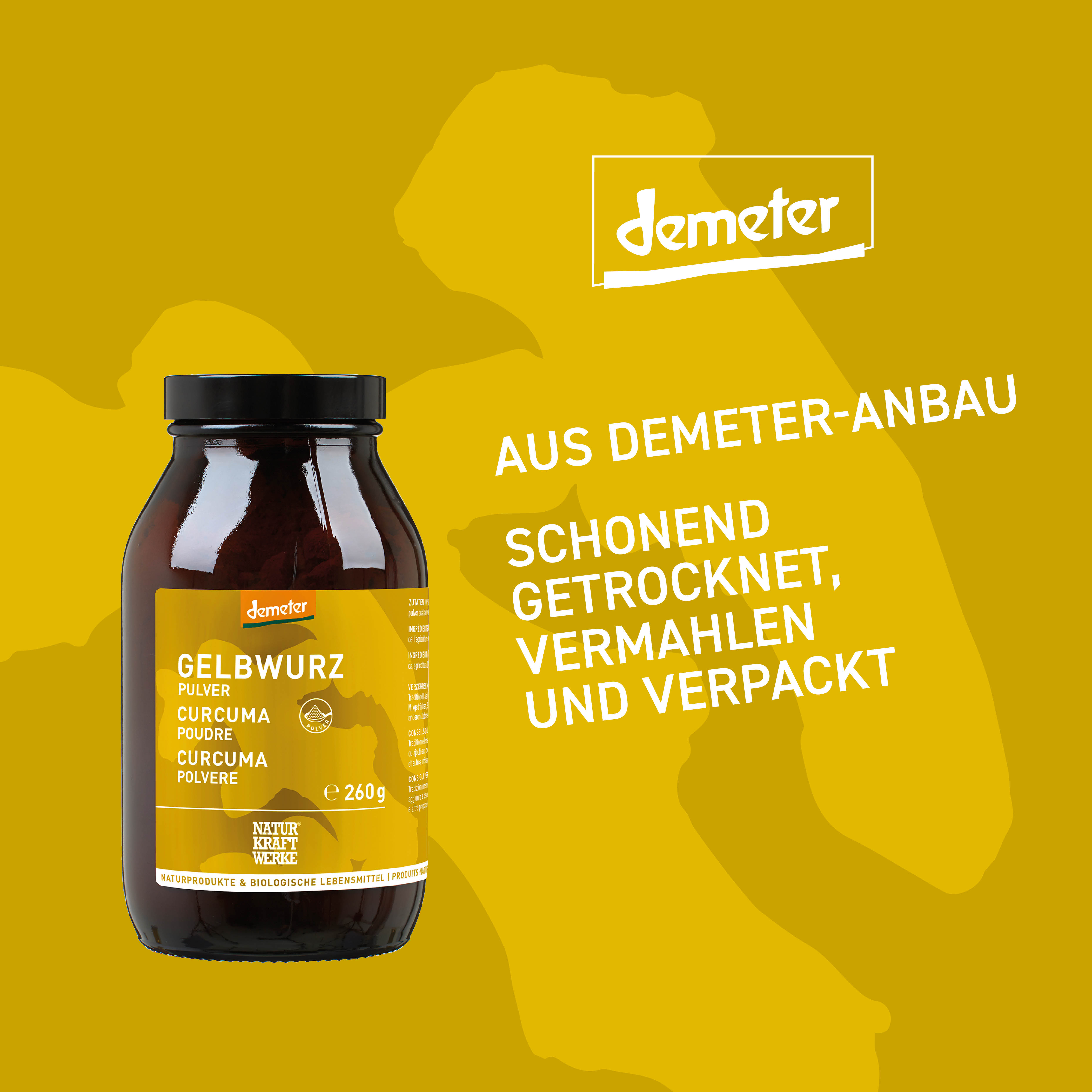 Unser Demeter Gelbwurzpulver (Curcuma longa) wird von A bis Z unter schonenden Bedingungen getrocknet, vermahlen und verpackt. Damit bleiben die ernährungsphysiologisch wichtigen, sekundären Pflanzenstoffe der Kurkumawurzel möglichst vollständig zu erhalten.